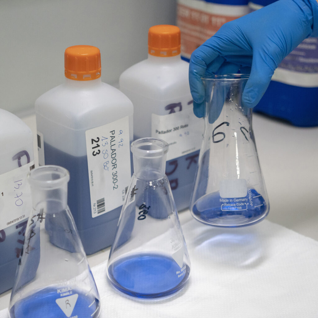 UNI EN ISO 14001:2015 and 45001:2018: Design and manufacture of chemical products for the treatment of metal surfaces in the goldsmith, silversmith, watchmaking, eyewear, clothing and accessories sectors by means of chemical synthesis, mixing and packaging processes. Manufacture of equipment and machinery for the galvanic sector by means of assembly and packaging processes.